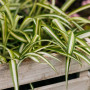 The spider plant (Chlorophytum comosum) is a species of perennial flowering plant in the family Asparagaceae. Native to tropical and southern Africa, spider plants have long, slender leaves that can reach lengths of up to 16 inches (40 cm). The plant gets its name from the long, arching leaves that resemble the legs of a spider.